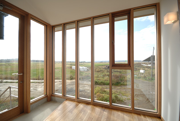 2007年(平成19年)G邸 (設計…フリーハンド:小井田設計室) 道南杉とコンクリート風のモルタルによる個性的な外観 木の温もりを活かしたリビングには薪ストーブも 楕円形のテーブルが見た目にも斬新なダイニング リビングを見下ろすことができるロフトの一室 愛犬用のスペースとして造ったサンルーム 窓からは地平線に沈む夕日を眺められる 趣のある階段 ヒバ造りの浴室
