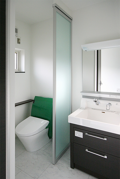 2008年(平成20年)Y邸 高級マンションを思わせる2階子世帯のリビングルーム 外観は高耐久なガルバリウム鋼板を施工 1階親世帯のリビングはゆとりのオープン空間 2世帯の大家族でも十分な広い玄関とホール 洗面所・トイレ一体として高齢者にも配慮 モダン間隔も取り入れた和室 ダイニングは壁一面をおしゃれな収納とした 落ち着いたカラーコーディネートの寝室 シンプルモダンな対面式キッチン