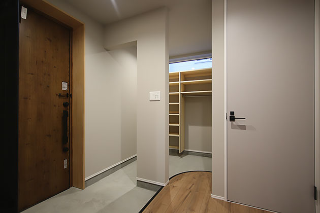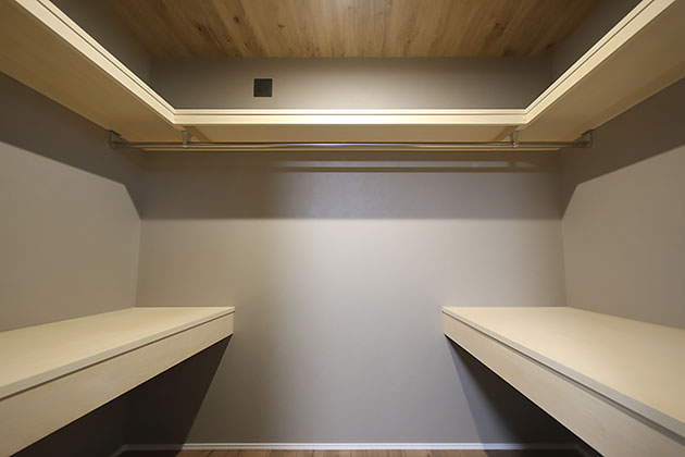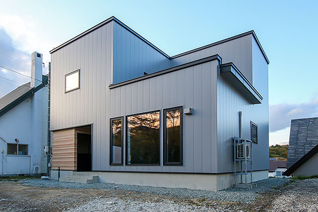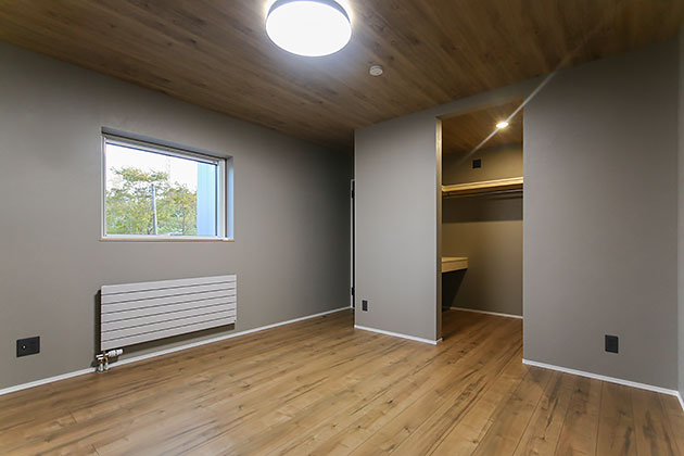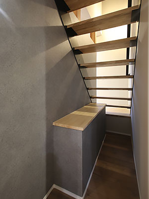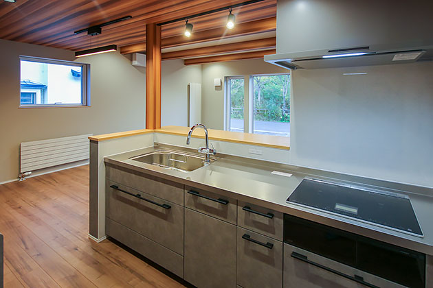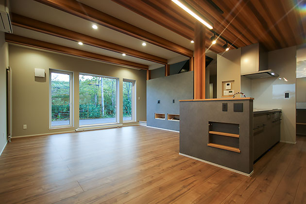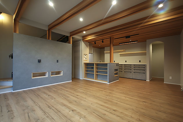 外観同様にグレーをアクセントカラーとしてコーディネートしたLDK