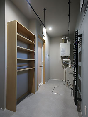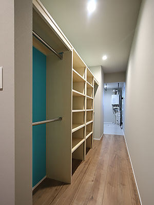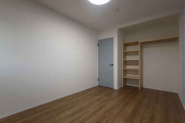 建具(ドア)はアクセントクロスと同じくブルーグレーに