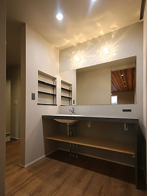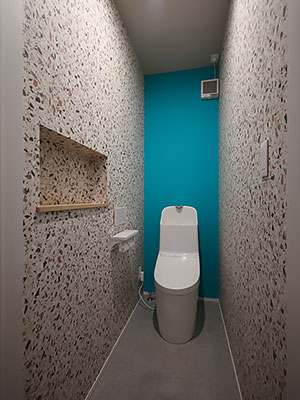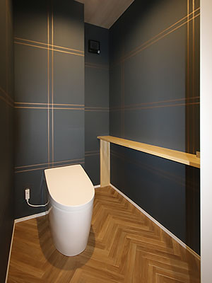 仕上げがリッチな雰囲気を醸し出す1階トイレ
